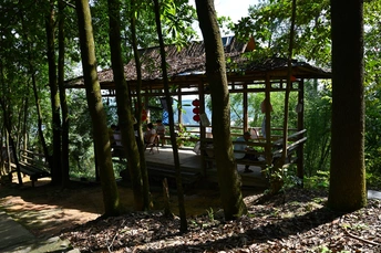 只带了尼康Z7ii+Z26 f2.8 走过林荫道回头一看,被树木包围着的全木凉亭在阳光的斜照下显得古朴安静,忍不住蹲下来按下快门。