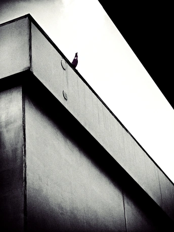 黑白定格的瞬间,建筑是现实的壳,鸟儿是逃逸的梦,短暂相拥又各自成谜 。