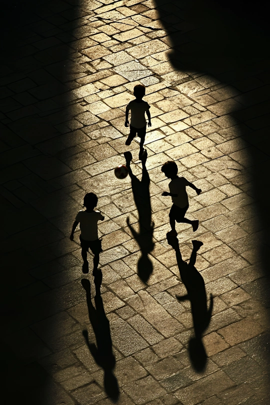 这张照片巧妙地运用了光影,捕捉了孩子们玩耍的瞬间,极具生活气息。色彩方面,暖色调的阳光洒在石板路上,营造出温馨的氛围。但整体色彩略显单一,后期可以尝试调整色彩平衡,增加一些层次感。光影处理是亮点,孩子们的身影在地面上投下长长的影子,增加了画面的趣味性和故事性。不过,部分区域的阴影略显生硬,可以适当柔化。构图上,从高角度俯拍,将孩子们和他们的影子纳入画面,主体突出,构图简洁。如果能稍微调整一下拍摄角度,让孩子们的位置更符合黄金分割点,视觉效果会更好。后期处理方面,整体效果自然,没有过度修饰的痕迹。但在暗部细节的处理上可以再下功夫,让画面更具层次感。主题原创性方面,抓拍孩子们玩耍的场景并不罕见,但这张照片的光影效果和构图方式赋予了其独特的魅力。情感共鸣方面,孩子们无忧无虑的玩耍,很容易引起观者的共鸣,让人回忆起童年的美好时光。思想深度方面,照片表达了童年的快乐和自由,同时也引发了对城市空间中儿童活动的思考。建议:尝试寻找更多具有对比度的色彩,增强视觉冲击力;在光影处理上更加精细,突出明暗对比,营造更强的氛围感;尝试不同的构图方式,寻找更具视觉冲击力的角度。