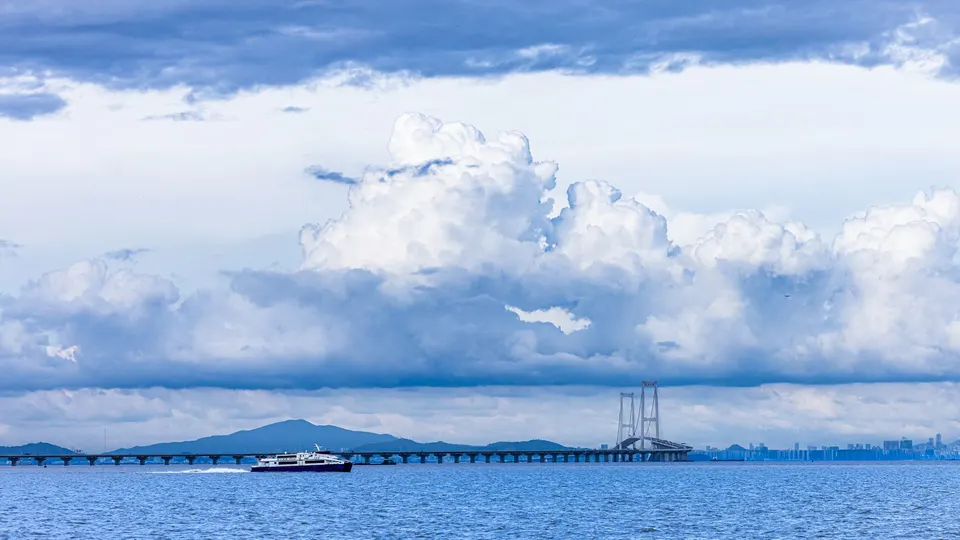 在中山拍摄的深中大桥,最近天上的云很多也很壮观