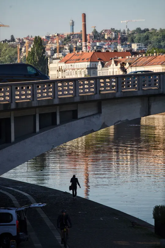 桥边暮色漫漫,车流碾过金纱般的余晖。半江橙红驮着城市的剪影流淌,你我能否放慢脚步👣、等一等?!