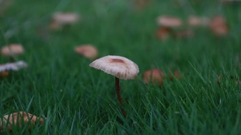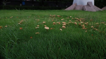 草坪是大地的绿毯,蘑菇是其上的灵动装饰。这一片小小的菌菇群落,带着潮湿泥土的气息,在微光里静静生长,像大自然随手撒下的星子,点亮平凡的草地