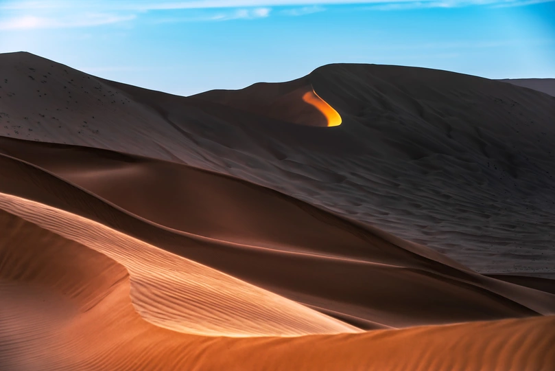借助最后一缕阳光,捕捉风的形状。 #沙漠 #日出日落 #旅行