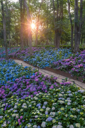 当清晨的第一缕光温柔地吻醒这片绣球花海,整个世界仿佛被施了魔法。深深浅浅的蓝、如梦似幻的粉、纯净无瑕的白……层层叠叠的花球簇拥着、蔓延着,织就了一幅流动的锦绣地毯。置身其中,仿佛瞬间坠入了童话书里的秘密仙境,每一步都踏在柔软的诗意上。微风拂过,花枝轻颤,露珠在花瓣上滚动着晶莹的光,空气里弥漫着清新又治愈的气息。这一刻,只想沉醉在这片浪漫的海洋里,让镜头替我收藏这份独属于夏日的温柔馈赠。📸