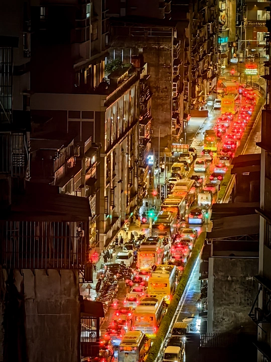 燈火通明,車水馬龍。繁忙街道上車輛燈光交織的瞬間,每一道紅色尾燈都訴說著人們在一天結束後急於歸家的心情。