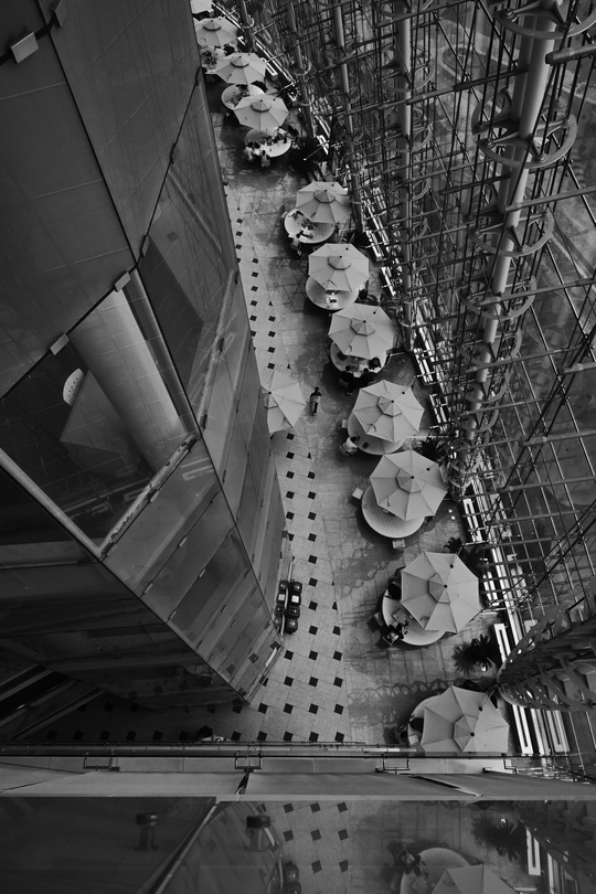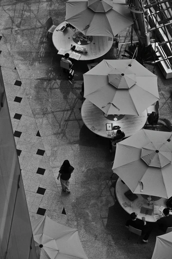 在这张黑白摄影作品中,摄影师选择了高角度俯视,展现了一个独特的城市景观。色彩方面,由于是黑白照片,重点在于灰阶的运用。整体影调控制良好,但高光部分略有溢出,细节损失。光影方面,光线较为均匀,缺少戏剧性的光影效果,导致画面略显平淡。构图方面,对角线构图增强了画面的空间感,但元素排列略显拥挤,可以尝试更简洁的构图方式。后期处理方面,黑白转换效果不错,但可以适当增加对比度,使画面更具冲击力。主题原创性方面,高角度俯视视角较为新颖,但主题表达不够明确,可以尝试更具故事性的场景。情感共鸣方面,画面较为冷静,缺乏情感上的感染力,可以尝试捕捉更有趣的瞬间。思想深度方面,照片展现了城市生活的缩影,但缺乏更深层次的思考。总的来说,这张照片具有一定的视觉冲击力,但在主题表达和情感共鸣方面仍有提升空间。建议在拍摄时注意光影的运用,尝试不同的构图方式,并在后期处理中加强对比度。