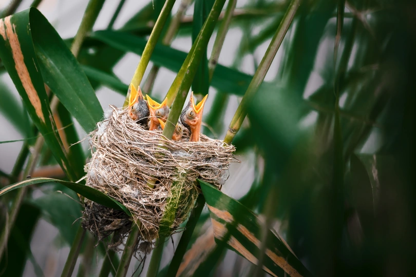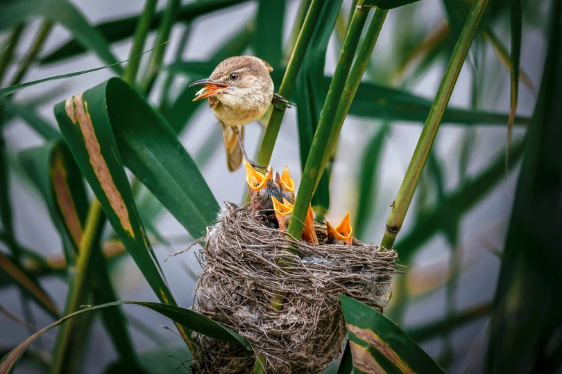 大苇莺妈妈归巢的这一刻,小小的苇杆上瞬间“炸”开数张小嘴。没有指挥,却如此整齐;没有排练,却充满力量。