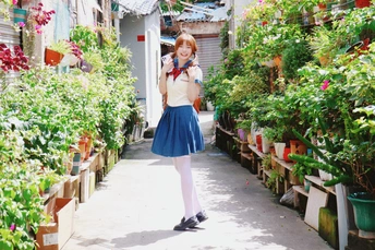在这张照片中,色彩整体偏柔和,绿色背景与人物服装的蓝色形成对比,较为和谐。光线较为均匀,但缺乏突出主体的光影效果。构图上,人物置于中心,较为传统,但背景的绿植增添了生机。后期处理方面,色彩饱和度略有提高,但整体效果自然。照片主题偏向日系风格,但原创性略显不足。情感上,人物表情较为平静,能够传递出一种恬静的氛围。思想深度方面,照片较为轻松,没有深刻的社会意义。建议尝试更多角度和构图方式,利用光影突出人物,并在后期处理上适当调整对比度,以增强视觉冲击力。同时,可以尝试融入更具创意的元素,提升作品的原创性和思想深度。