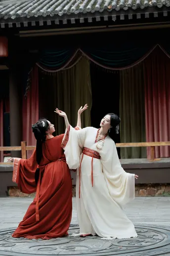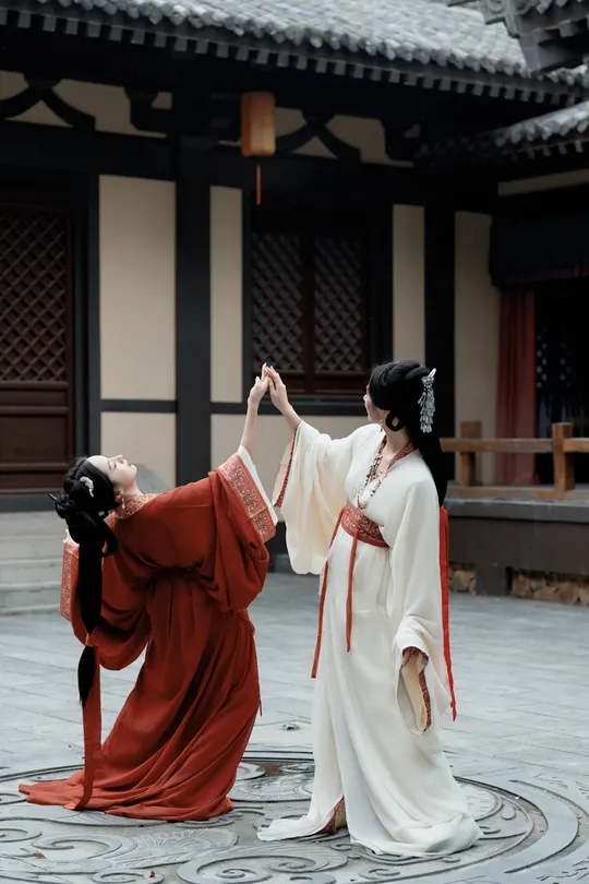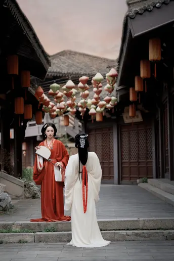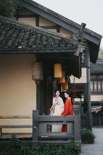 与闺蜜共穿战国袍,踏入时光回廊。她莞尔一笑,袖口流苏轻晃,我衣袂飞扬回应,那一刻,我们跨越千年,续写独属于我们的情谊诗篇。