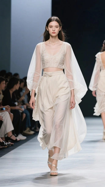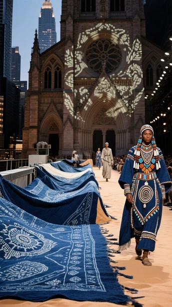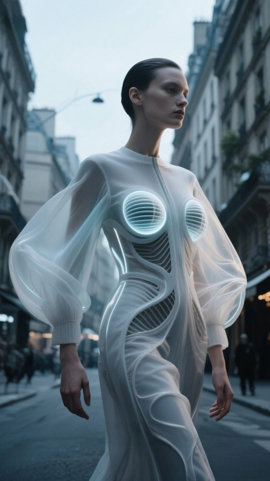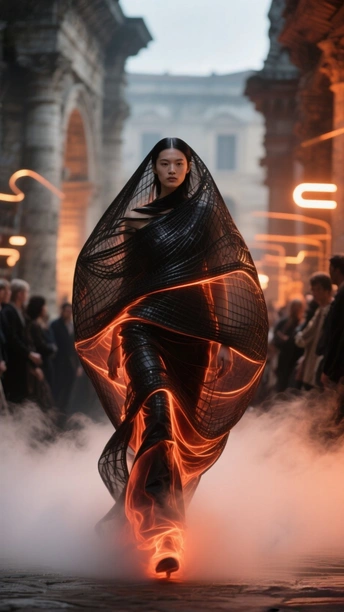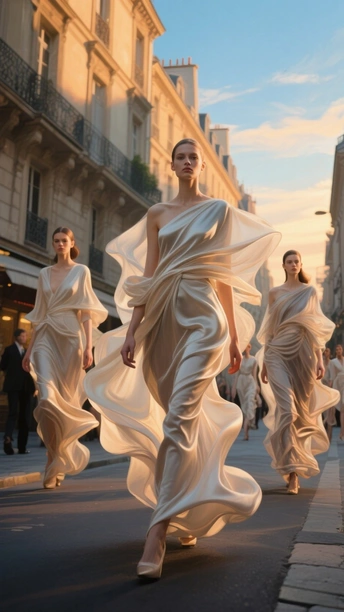当镁光灯刺破纽约的雨幕 剪裁利落的西装在风中解构 金属链条缠绕着布鲁克林的黄昏 每个褶皱都藏着叛逆的温度 伦敦雾霭漫过T台边缘 格纹与蕾丝在时光里倒带 维多利亚的幽灵踮脚起舞 与霓虹涂鸦交换瞳孔里的色彩 米兰的丝绸裹着文艺复兴的叹息 天鹅绒裙摆扫过哥特尖顶 一针一线绣进地中海的潮汐 褶皱间流淌着大理石的呼吸 塞纳河畔的玫瑰正在脱壳 羽毛与薄纱悬浮成云朵 高定珠片折射着十八世纪的月光 模特的足音踏碎时间的琥珀 世界在T台上折叠又舒展 丝绸与皮革碰撞出星际的震颤 当不同肤色的轮廓掠过镁光 美的定义正长出新的枝桠