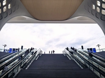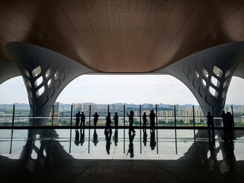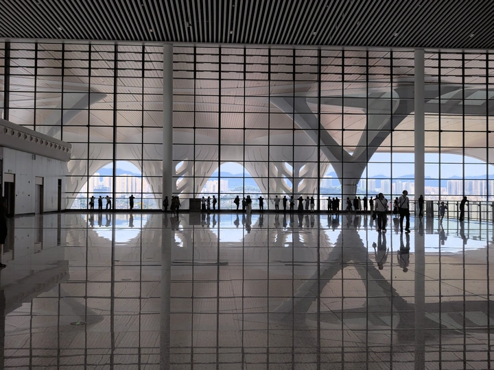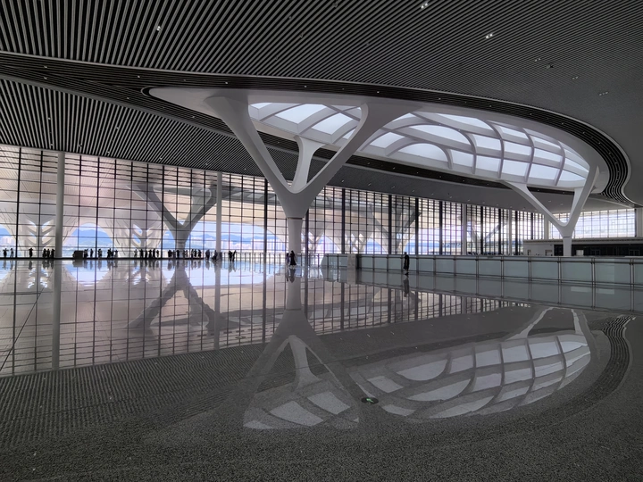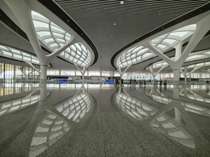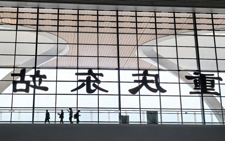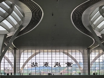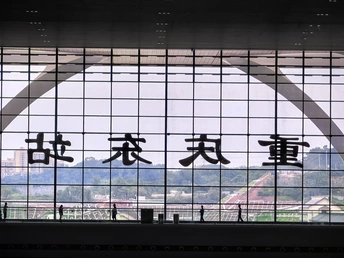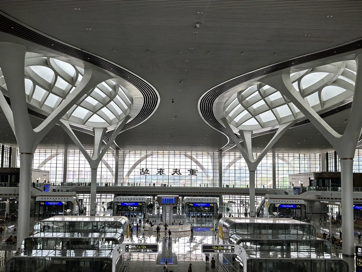 踏入重庆东站,仿若步入一个未来与历史交织的时空之境。巨大的玻璃幕墙宛如剔透的水晶书页,将山城的蓝天、流云与远处的山峦一并收录其中,构成一幅幅流动的山水画卷。透过这玻璃屏障,阳光如碎金般倾洒而下,在光洁如镜的地面上翩翩起舞,折射出梦幻般的光影。 建筑内部,独特的结构线条纵横交错,似是从巴渝大地上生长而出的艺术脉络,既有着现代建筑的刚劲与利落,又隐隐透着巴渝山水的灵动与婉转。人们穿梭其中,或行色匆匆奔赴远方,或驻足凝望着窗外的城市风光,每一个身影都被这宏大而温馨的空间所包容,成为重庆东站这幅生活长卷中鲜活的一笔。 重庆东站,它不仅仅是一座交通枢纽,更是山城重庆向世界递出的一张崭新名片,承载着这座城市的过去、现在与未来,见证着无数的相聚与离别,也诉说着重庆不断迈向繁荣与开放的动人故事。