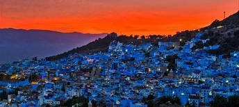 舍夫沙万的暮色,天空燃起橙红烈焰,与错落的蓝白屋宇泾渭分明。冷暖色调相互碰撞,静谧与绚烂交织,勾勒出北非小镇独有的黄昏诗意,每一帧都美得惊心动魄。