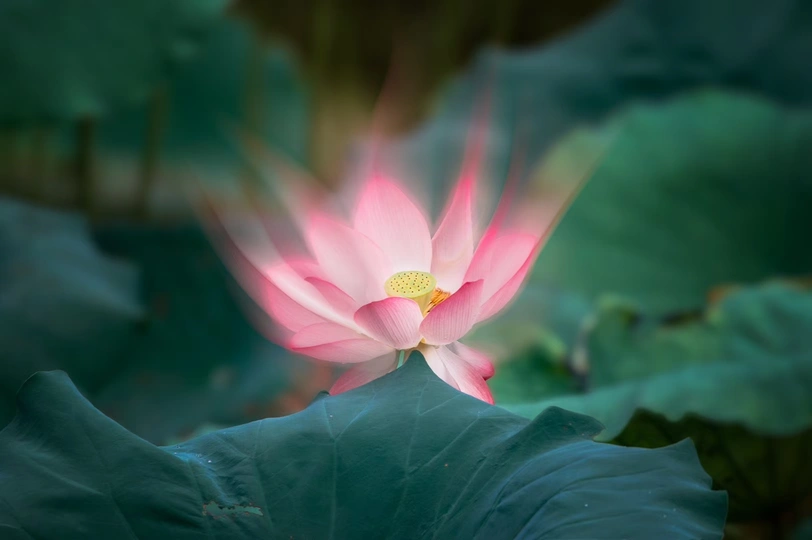 拍摄这朵荷花时,我在荷塘边等待了许久。夏日破晓前,我带着对光影的期待踏入这片清幽。当第一缕天光漫过荷叶,我以慢门捕捉微风,让花瓣的动态与静态交融,营造出这般虚实相生的意境。 这张照片,是自然韵律与摄影技艺的共振——荷花绽于淤泥,却借光影挣脱俗世的“实”,化作流动的“虚”,暗合东方美学里“空灵为镜,照见本真”的哲思。按下快门的刹那,我明白,拍摄的不只是花,而是让观者透过这朵荷,触摸到夏日清晨独有的、既真实又超逸的诗意,在喧嚣里辟出一方宁静的、属于美的禅境 。