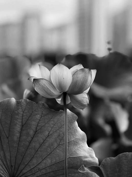 在这张黑白摄影作品中,荷花在光影的烘托下显得格外典雅。色彩方面,虽然是黑白照片,但灰阶过渡自然,营造出一种宁静致远的氛围。光影运用巧妙,光线柔和地洒在花瓣上,突出了花朵的纹理和形态,大片的荷叶在阴影中,使得主体的荷花更为突出。构图上,主体荷花放置在画面中央略偏上的位置,遵循了中心构图,主体突出,但略显呆板,可以尝试三分法构图,使画面更具活力。后期处理方面,对比度适中,细节保留较好,没有过度锐化或模糊的痕迹。主题的原创性中规中矩,拍摄了常见的荷花题材,但表现手法较为细腻,有一定的个人风格。情感共鸣方面,作品传达了一种平静、安详的情绪,能够引起观者的共鸣。思想深度方面,照片通过对荷花的描绘,表达了对纯洁、高尚品格的赞美,但深度挖掘稍显不足。建议尝试不同的拍摄角度和构图方式,或者在后期处理中增加一些个人化的风格,使作品更具特色。