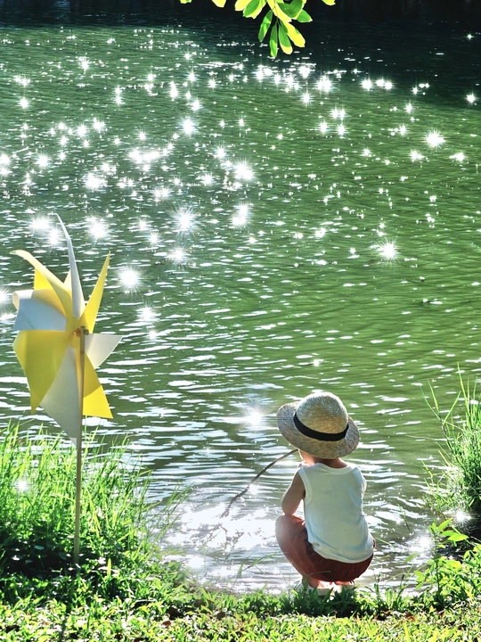 非常偶然地遇见了一位小“路飞”,盛夏阳光在他身前洒下星芒,妈妈给他买的火车随风转动,一切都很梦幻。