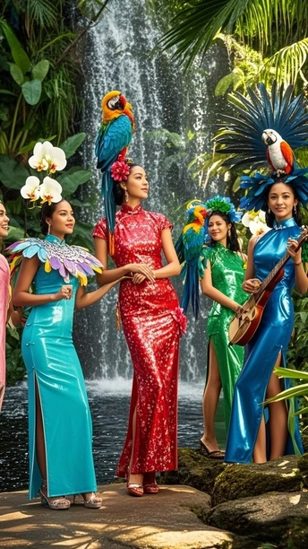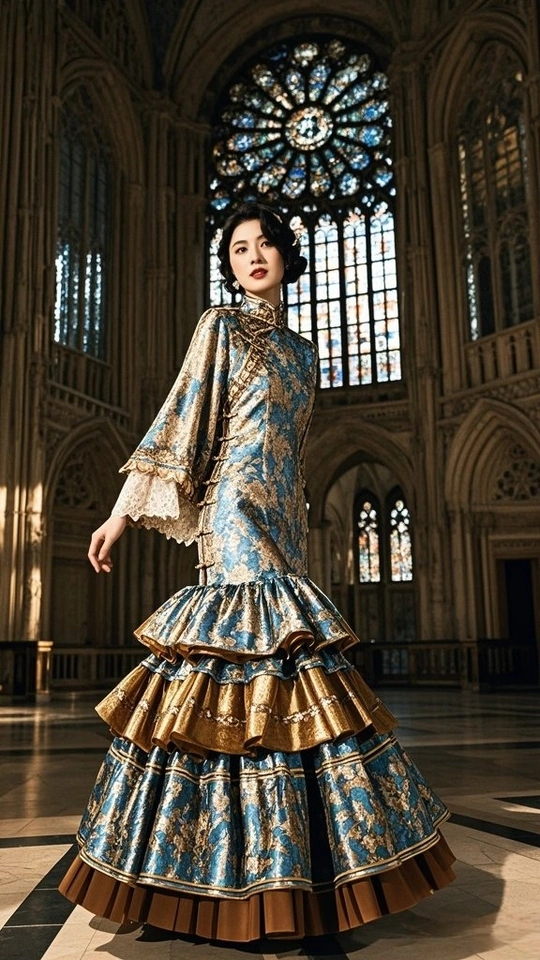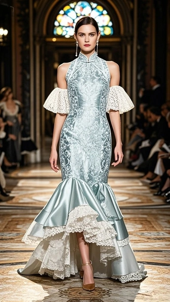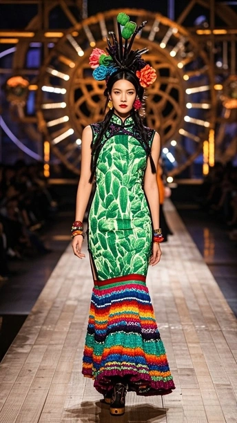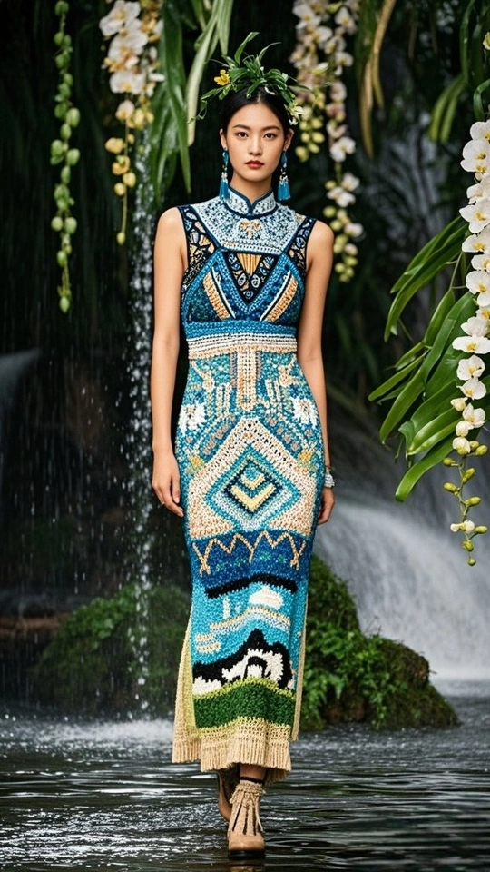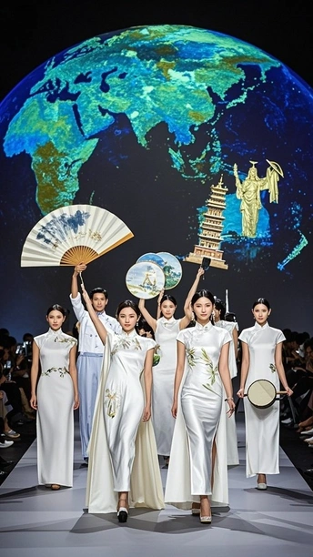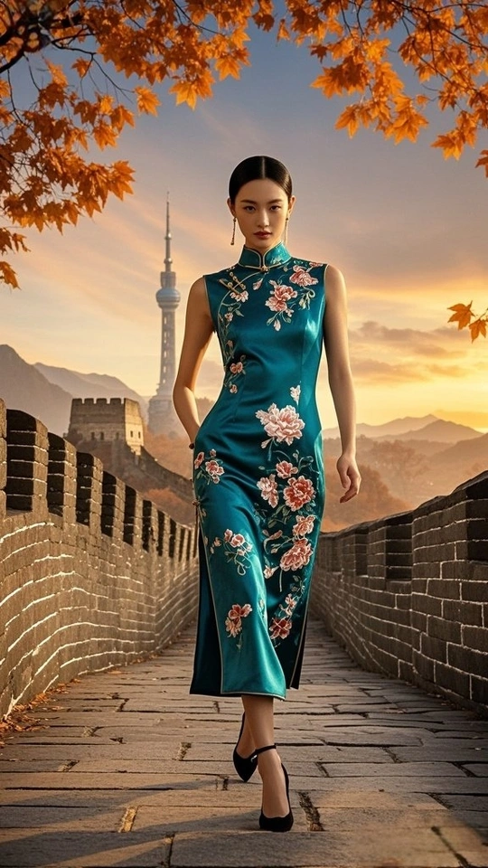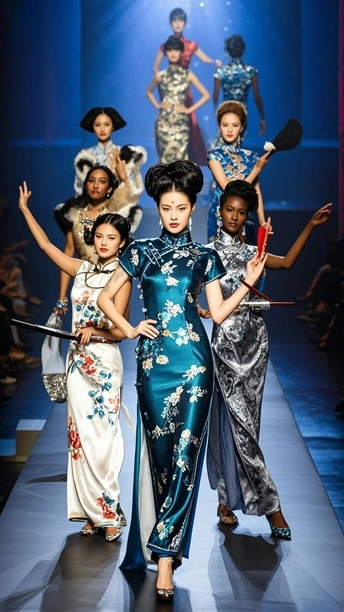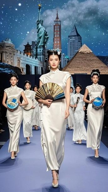 丝绸裹着五千年月光 盘扣咬住东方的隐喻 当琵琶弦在纽约街头震颤 开衩处漫出江南的雾 巴黎铁塔弯下腰 试图解读襟上盘金绣的密码 亚马逊雨林的风 掠过牡丹刺绣的云肩 将暗香揉进土著的图腾 悉尼歌剧院的贝壳张开时 水波纹缎面托起一轮满月 撒哈拉沙丘记录下 绣鞋轻点的古老韵脚 在南北极的冰原 滚边勾勒出滚烫的曲线 让旗袍的褶皱里 长出带茶香的春天 每一针刺绣都是迁徙的候鸟 穿越经度与纬度的经纬 当盘扣解开时 七大洲的风都学会了 用丝绸的弧度 丈量文明相遇的温度