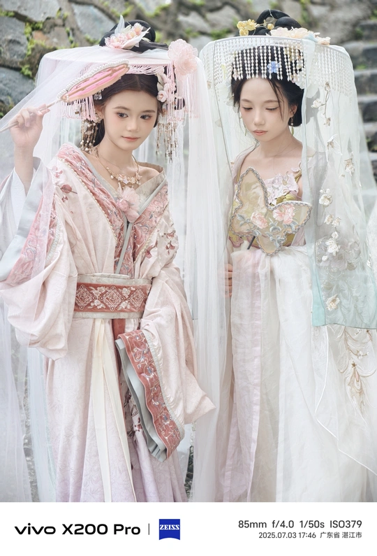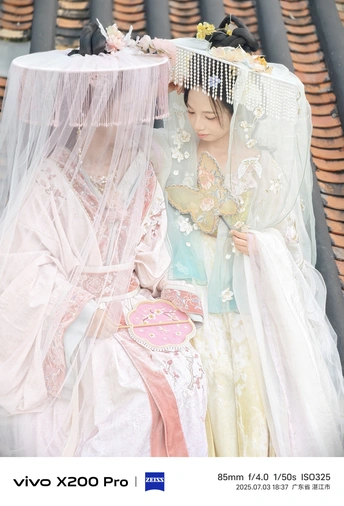 Shot on vivo X200 Pro. 盛夏时节的午后,两名妙龄少女头戴帷帽、身披素雅的轻纱,缓步穿行于赤坎老街,静静感受着小巷周边古色古香的独特气氛。她们的微笑如桃花般娇艳欲滴,身姿如天使般优雅轻盈,令人过目难忘。。