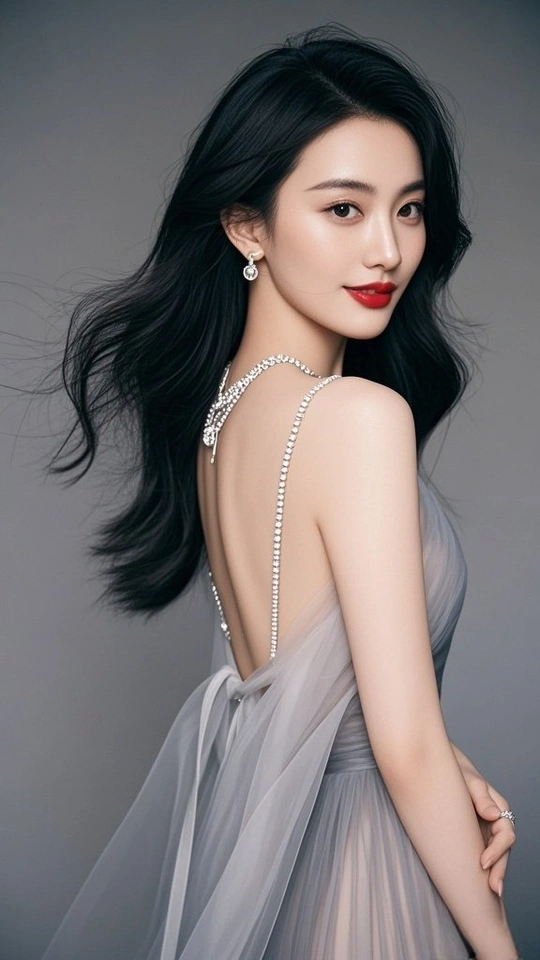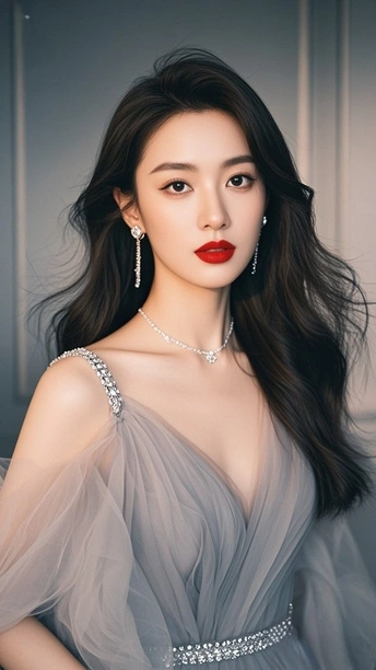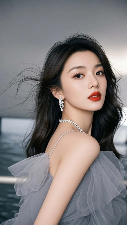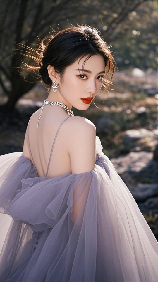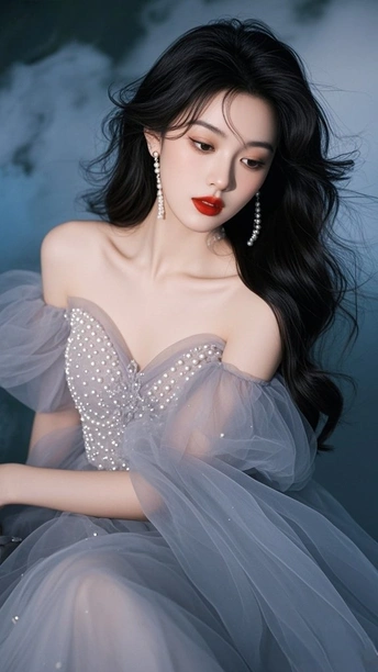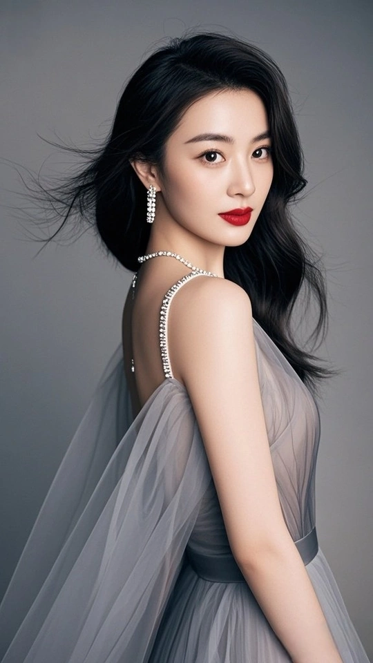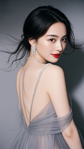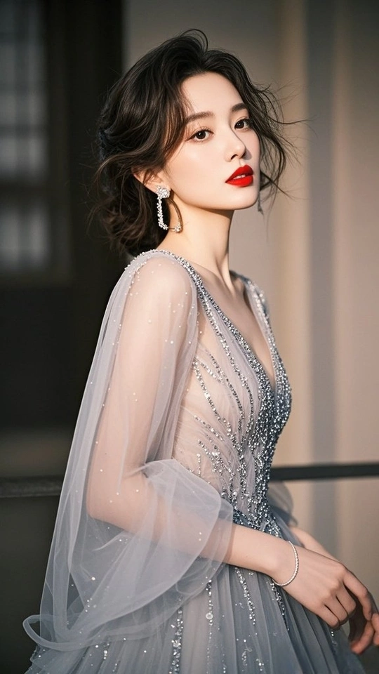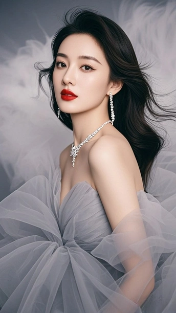 在灰的幕布前 你是流动的诗行 发丝漫成云的形状 缠绕风的目光 薄纱轻掩 是月光 裁一片朦胧 披在肩 银饰闪烁 星子坠落在 颈间、耳旁 红唇是火 点燃 沉静的夜 影子在纱后 蜿蜒 像未说的诺言 你转身 把故事藏进 灰调的褶皱 每缕飘起的纱 都在哼 无声的歌