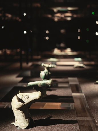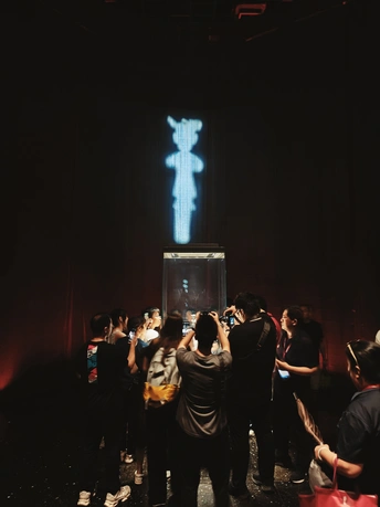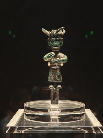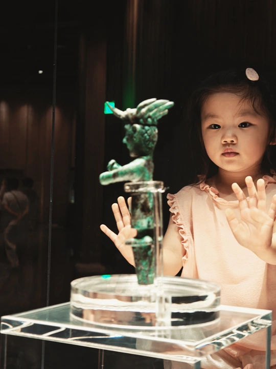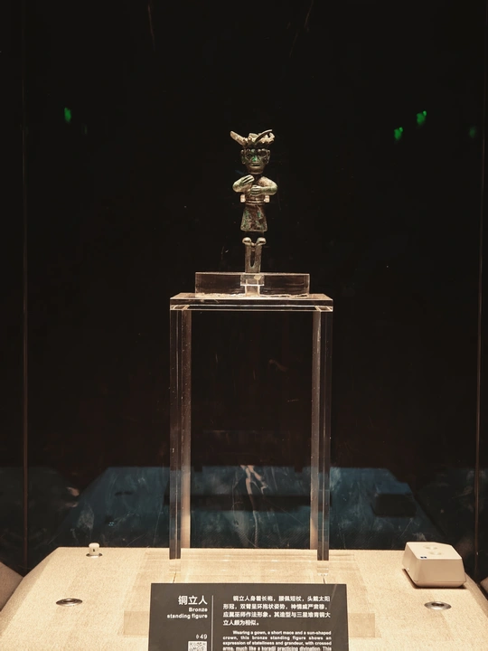 在时光褶皱里 考古铲轻吻泥土 三千年的心跳 破土而出 黄金面具流转冷光 鸟纹婉转诉说 太阳的轨迹 玉琮藏着星辰密码 青铜立人像 沉默凝望人间 风掠过乌木林 吹不散古蜀的迷雾 每一粒沙都是时光胶囊 封存着祭祀的歌谣 和一场永不落幕的盛宴 我触摸展柜玻璃 与千年前的目光相遇 那些神秘的符号 在掌心发烫 化作金沙永恒的光