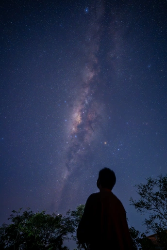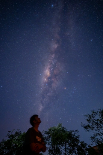 深夜在辽阔的旷野独自仰望星空 银河如银带倾泻点缀无尽的寂静 每一颗星都像在诉说宇宙的秘密 穿越时空的星光仿佛在提醒着我 独处也是一种与星辰对话的温柔