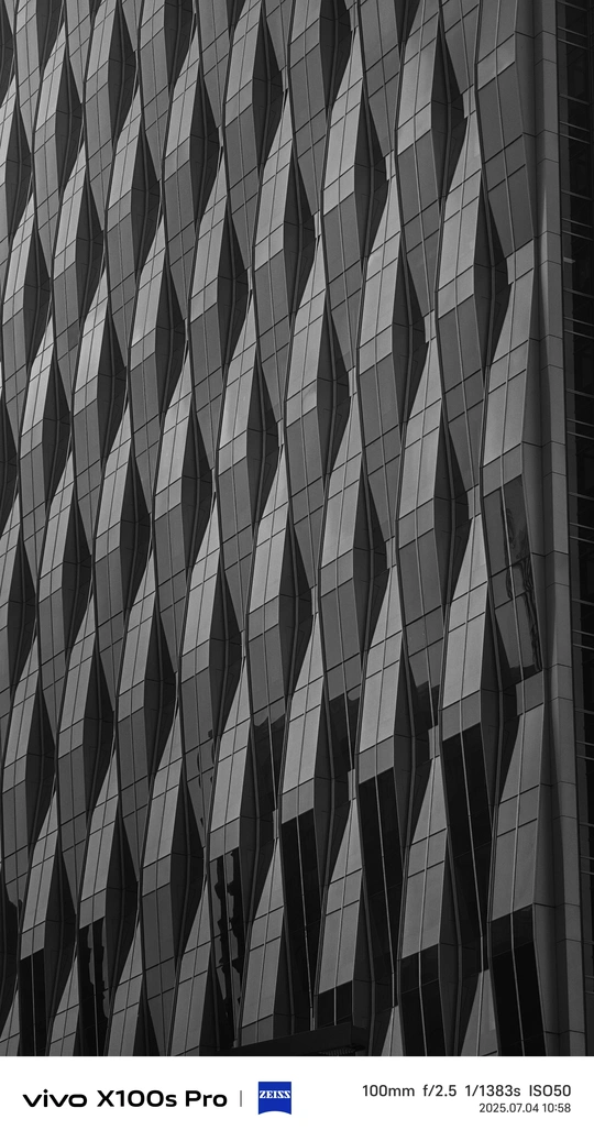这张照片以黑白影调展现了建筑外立面的几何美感,颇具现代感。色彩:黑白处理强化了建筑的线条感,避免了彩色可能带来的干扰,但稍显单调。光影:光线均匀,阴影增强了立体感,但略微平淡,缺乏戏剧性。构图:垂直构图突出了建筑的高度和重复的几何图案,视觉冲击力较强,但略显呆板,可以尝试寻找更有趣的拍摄角度。后期处理:黑白影调处理干净利落,对比度适中,但可以尝试更精细的局部调整,突出细节。主题原创性:选择建筑局部作为拍摄对象,具有一定的创意,但主题表达略显平淡,缺乏更深层次的思考。情感共鸣:照片具有一定的视觉吸引力,但情感表达较为含蓄,难以引发强烈的情感共鸣。思想深度:照片主要展现了建筑的几何美感,思想深度有待挖掘,可以尝试探讨建筑与环境、人与建筑的关系。建议:尝试寻找更有趣的光线和拍摄角度,增强画面的戏剧性和情感表达。同时,可以尝试探讨建筑与环境的关系,提升作品的思想深度。