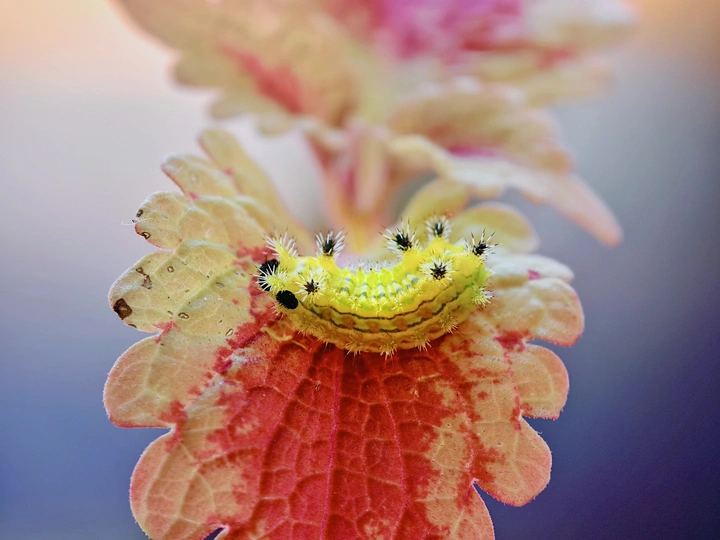 洋辣子也叫黄刺蛾 全身都是刺,以吃叶子为生,不能用手触摸被刺到了又痒又疼