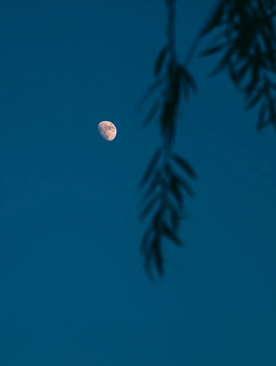 斜枝伸臂捞沉月, 却放流霜裹暮绒。 错把余晖当饵料, 垂钩钓破夜之瞳。