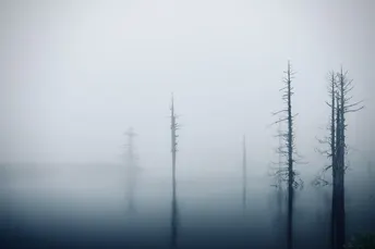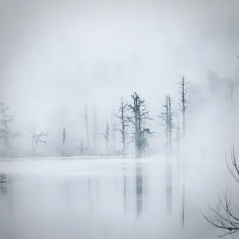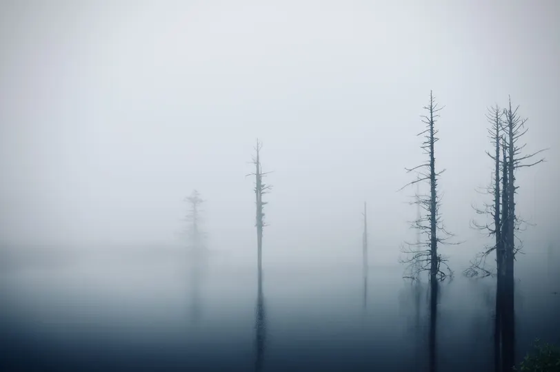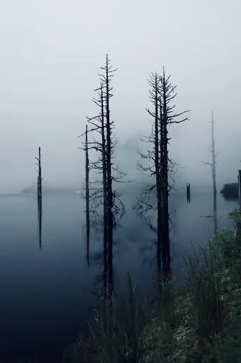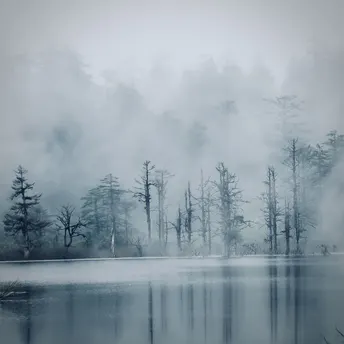 七月的瓦屋山,正当雨季,雾气缭绕山间!山顶的鸳鸯池,几颗枯死的冷杉伫立在无波的寒潭中,迷雾从远处飘来,若隐若现中,为鸳鸯池披上了一层神秘的面纱