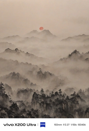 Ai评测:这张照片模仿国画的意境,颇具东方韵味,简直像从水墨画卷里走出来的一样!色彩方面,整体色调统一,以柔和的米色和灰色为主,烘托出朦胧的意境。那一抹红日恰到好处地提亮了画面,但色彩略显单调,可以考虑增加一些微妙的色彩变化,譬如在雾气中加入淡淡的蓝色或紫色,增加层次感。光影方面,光线柔和,雾气营造出朦胧的光影效果,层次感十足。构图上,远、中、近景的层次感分明,主体突出,符合透视原理,空间感很强。但构图略显保守,可以尝试更具创意的构图方式,比如打破对称,增加画面的动感。后期处理方面,整体效果自然,没有过度修饰的痕迹,保留了水墨画的质感。主题原创性方面,模仿国画意境,有一定的创意,但在题材上较为常见,可以尝试融入更具现代感的元素,赋予作品新的内涵。情感共鸣方面,照片营造出宁静、悠远、神秘的氛围,能够引起观者对自然和文化的思考。思想深度方面,作品反映了人与自然的和谐共生,具有一定的哲理性。建议:在保持水墨画意境的基础上,可以尝试更具现代感的色彩和构图,并融入个人对自然和人生的思考,让作品更具个性和深度。总的来说,这张照片是一幅不错的作品,具有较高的艺术价值,但仍有提升空间。