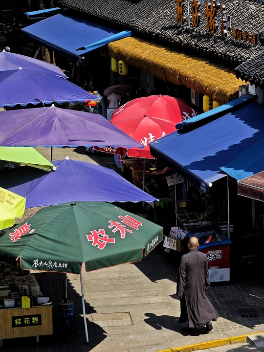僧人修行求清求净,集市喧闹,充满着烟火气