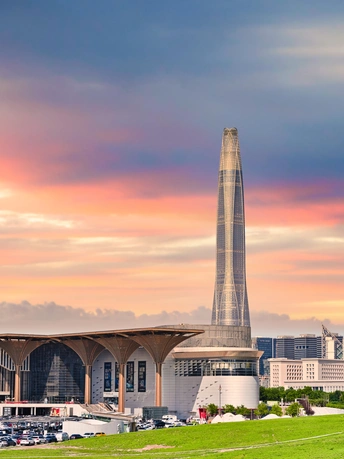 夏天连续多日的闷热和梅雨季,雨停之后的黄昏下的北方地标型建筑周大福金融中心,前面是另一个地标型建筑文化中心拥有着最美美术馆之一,在前面的公园绿地又是唐山大地震的遗迹。