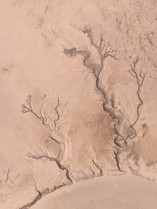 潮汐树静静匍匐滩涂,是时光与潮汐合著的生命图腾。潮起潮落如呼吸,雕琢出脉络走向,沙砾为纸、水流作笔,书写着海陆交融的故事,也暗喻生命在自然律动里,于冲刷与沉淀间寻得生长轨迹 。