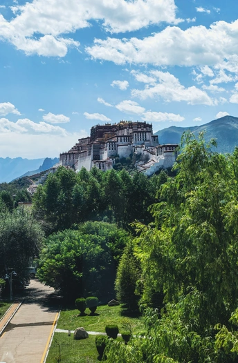 巍峨耸立于红山之巅,布达拉宫是雪域最璀璨的明珠。白墙红殿依山叠砌,金顶闪耀日光之城。千年的经筒转动,诵唱不朽的梵音;鎏金的佛像低眉,静看人间沧桑。拾级而上,触摸斑驳的宫墙,每一步都是与历史的对话。在这里,信仰是凝固的诗,苍穹是永恒的幕布。仰望,便是对天地最深的敬畏。