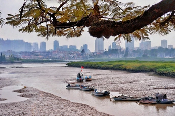 洛阳桥下,河水悠悠,河滩静谧,渔船静泊,岁月静好。