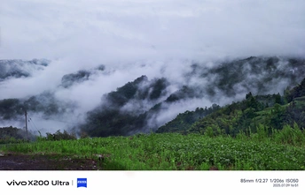雨后初歇,天地间漾着沁人的清新,每一缕气息都带着洗净尘埃的澄澈。恰好的凉意漫过周身,是雨后独有的清爽熨帖。云雾似流岚般漫卷,从青山如黛的脊背拂过,在峰峦间缓缓流动,将这方景致晕染成一幅静美的水墨丹青。