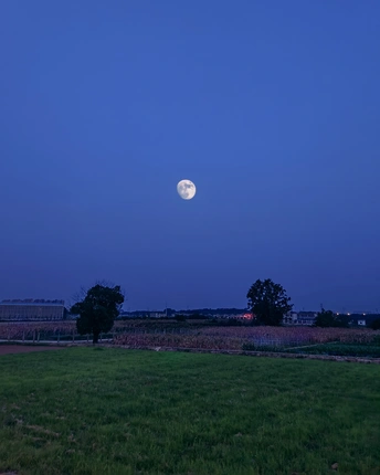 2025年7月6日拍摄于湖北省武汉市洪山区狮子山街华中农业大学。田间地头月更明。