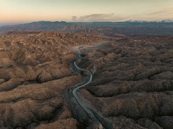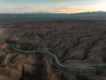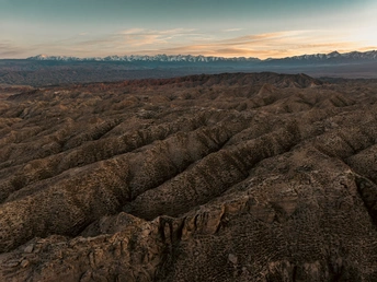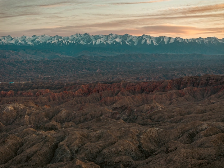 张掖周边太多丹霞地貌了,找了一片无人问津的地方,升起无人机拍下这组独特前景是祁连山晚霞