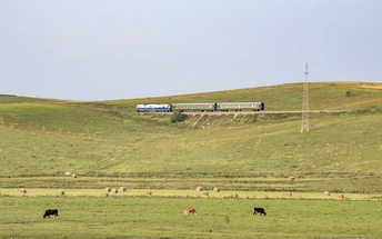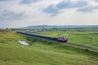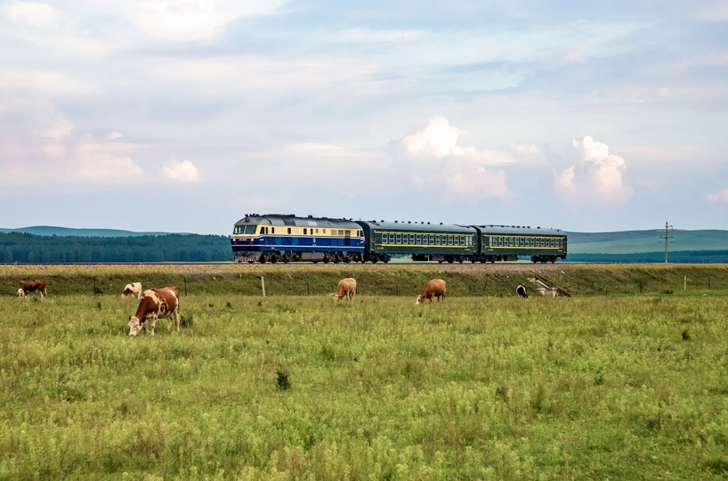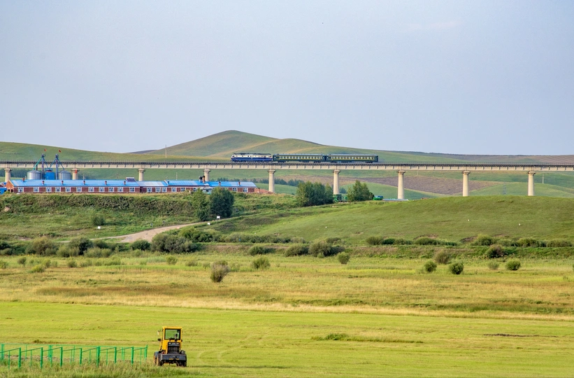 夏日呼伦贝尔大草原,水草丰美,牛羊成群,两日往返海拉尔/阿尔山,拍摄两伊铁路通勤车&日当山石灰石矿的小矿车。