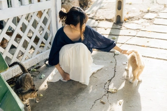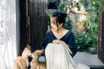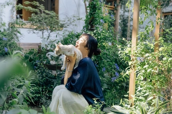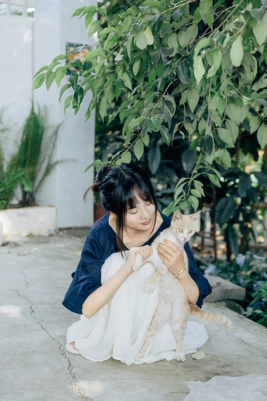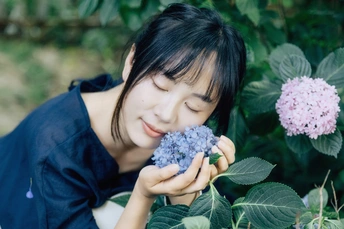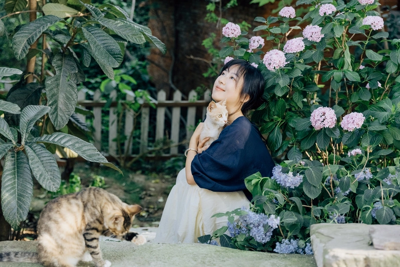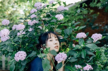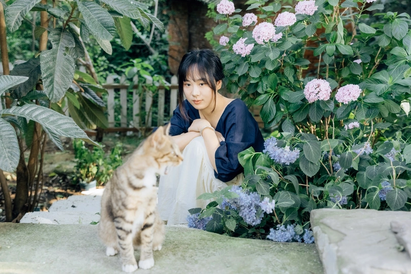 庭院的气质代表着主人家的性格。 她像是精灵一样,在蓝色绣球中穿梭,在光中闪烁。两只小猫会自己荡秋千,足够自由。我们都说要真正的好好生活,不要去表演生活。 /夏日电影感写真 微博/倩小鱼zizi (今年没有刻意去拍夏天的绣球。但生长在庭院的绣球感觉很不一样,不是为了某种景点目的而刻意栽种的,而是有院子主人很温润的气息,也就是周周种的很好,一眼就很想记录。喜欢这场照片的每一张,在她的这个阶段,是独一无二的。)