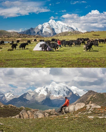 格聂朝圣7.9-7.11 V线:夯达营地-惹迪31km,看完7.9号的日照金山就出发,深入格聂腹地的一段!