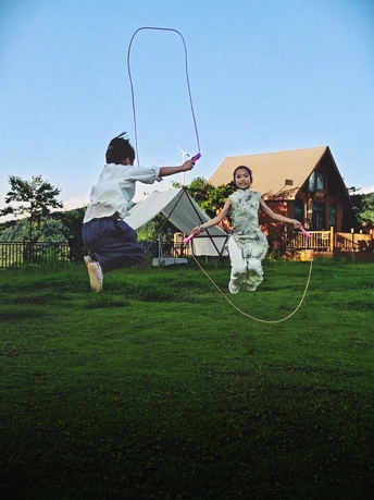 偶遇两小朋友正在彭水棕阁山上跳绳,赶紧按动快门记录这一精彩瞬间