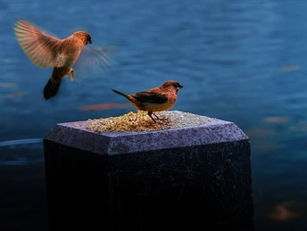 在重庆华岩寺湖边拍摄一只正在觅食的小鸟,突然另外一只飞乌也飞入,我赶紧按不快门。