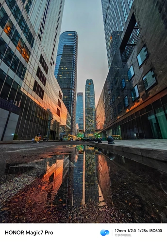 积水潭成了天然镜面,把国贸建筑群完美复刻,外卖小哥穿梭其中,像在城市镜像里奔赴生活~ Honor Magic7 Pro 随手一拍,建筑的硬朗线条、晚霞的温柔光晕,全被框进这方小天地,手机摄影的惊喜感拉满! 在钢筋水泥丛林里,总有些不经意的瞬间,让你看见城市浪漫的B面✨