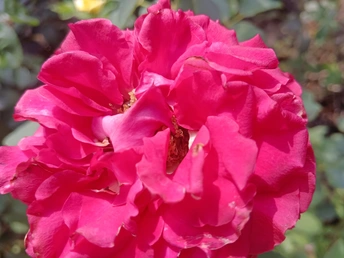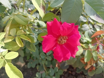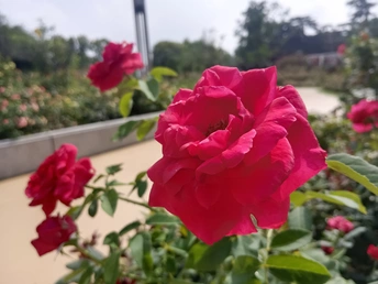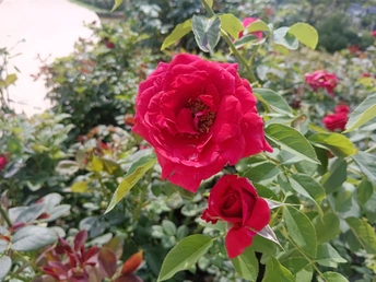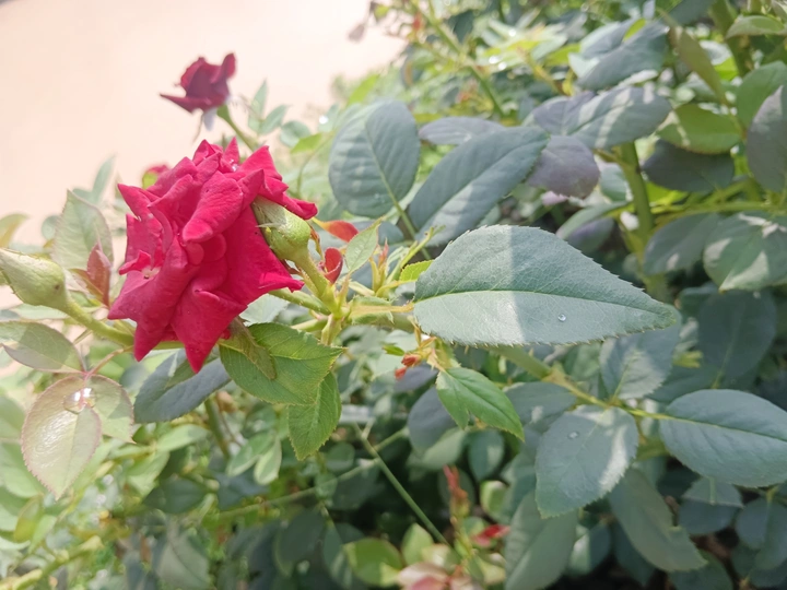 夏花之绽:红月季的生命礼赞 七月的风,裹挟着夏的炽热,拂过那朵红月季。它绽放在阳光下,如同一团燃烧的火,花瓣层层叠叠,似在诉说生命的热烈。 那浓郁的红,是岁月沉淀的色彩,每一丝纹路里,都藏着风雨的痕迹。花瓣边缘虽有细微残损,却未减其美,反倒添了几分历经沧桑后的坚韧。这多像人生啊,我们在生活的波折里前行,伤疤成了独特的印记,却让生命愈发厚重。 花蕊间,藏着生机与希望,哪怕花瓣会凋零,它也曾热烈地拥抱阳光。它提醒我们,生命的价值不在长久,而在尽情绽放。 于这夏日繁花中,红月季是平凡的,却以独特姿态,诠释着对生命的执着。它让我懂得,无论身处怎样的境遇,都该如这月季,以最鲜艳的色彩,最饱满的姿态,去奔赴时光,把每一刻都活成属于自己的灿烂风景 。