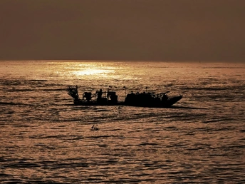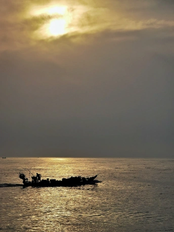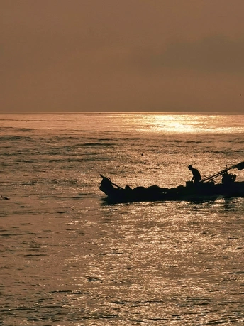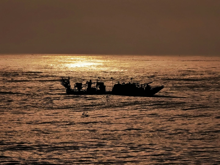 日出东海岸,游客、渔民各忙各的。