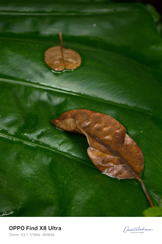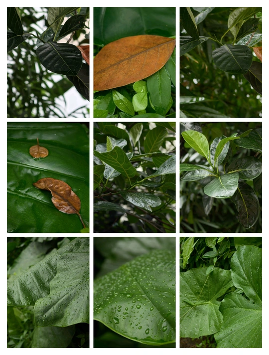 雨后的叶子,是大自然写的诗。水滴在叶上滚动,像散落的星子,旧叶躺在新叶的怀抱,诉说着季节的更迭。每片叶子都藏着时光的故事,潮湿的绿里,是生命循环的温柔注脚 。