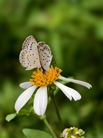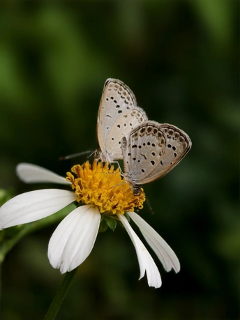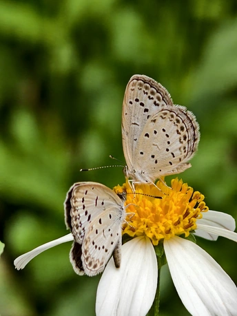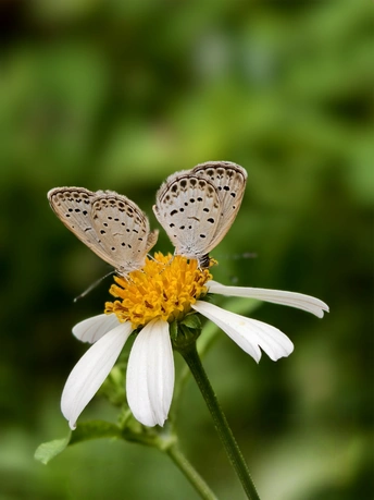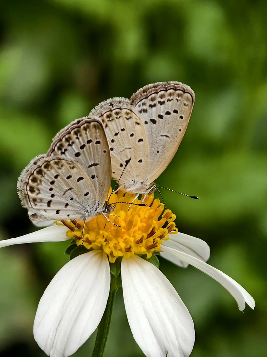 花朵洁白如雪,静静绽放,似在以温柔姿态拥抱世界。两只蝴蝶,宛如灵动的精灵,停歇其上,与花共赴一场无声的浪漫之约。它们在阳光里,构成一幅自然的诗意画,诉说着微小却动人的美好,让平凡瞬间满是生命交融的曼妙。