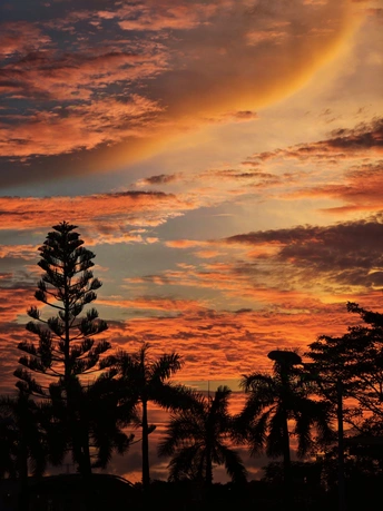 晚霞将天空晕染成温柔的画布,树影在这抹绚烂中静静伫立,每一刻都美得让人心醉