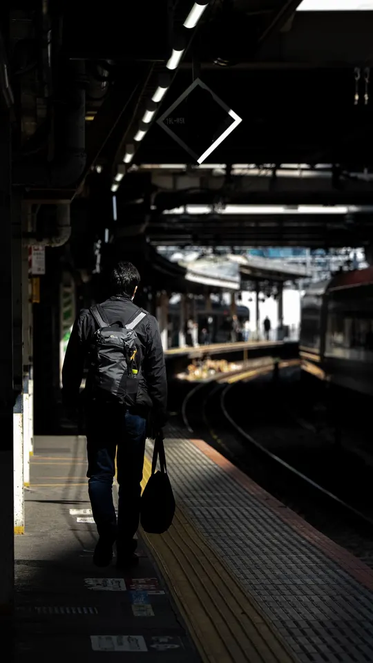 在东京新宿站台的二进制之夜,他是一段被城市主机遗落的字节。背后鼓胀的行囊是压缩半生的缓存区,左手晃荡的便利店塑料袋正渗出冰滴——那是今日唯一可测量的温度。信号灯由红转绿的瞬间,十二节车厢的荧光屏同步闪烁,他的剪影被吞入光流隧道,像一枚终于找到传输协议的字符。轨道尽头有未名的服务器,那里允许所有迷途者重新编译生活。