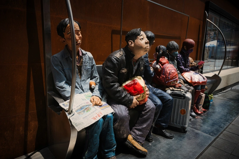 天美街区街拍雕塑